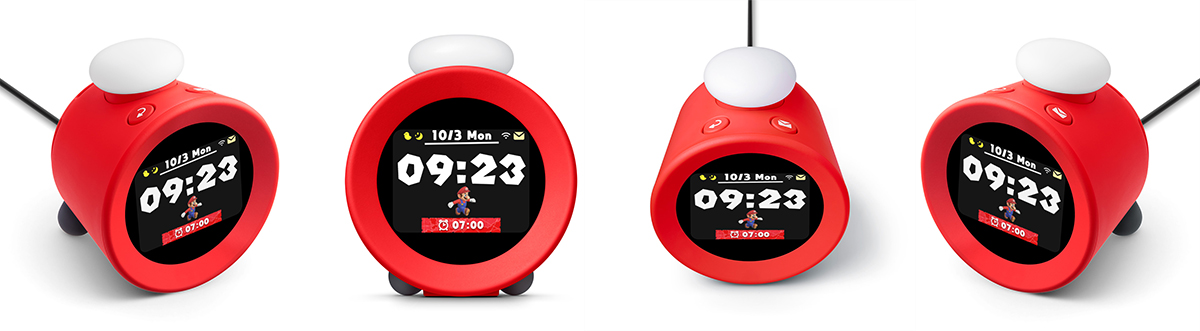 Secondo il comunicato stampa di Nintendo, Alarmo è “una sveglia interattiva progettata per portare un pizzico dell’atmosfera dei mondi di gioco Nintendo tra le mura di casa tua e nella tua routine quotidiana”. A vederla da lontano sembra proprio una sveglia di quelle che non si usano più da un pezzo: quadrante rotondo e vago rimando alla campanella nella manopola bianca che fa da “cappello”.