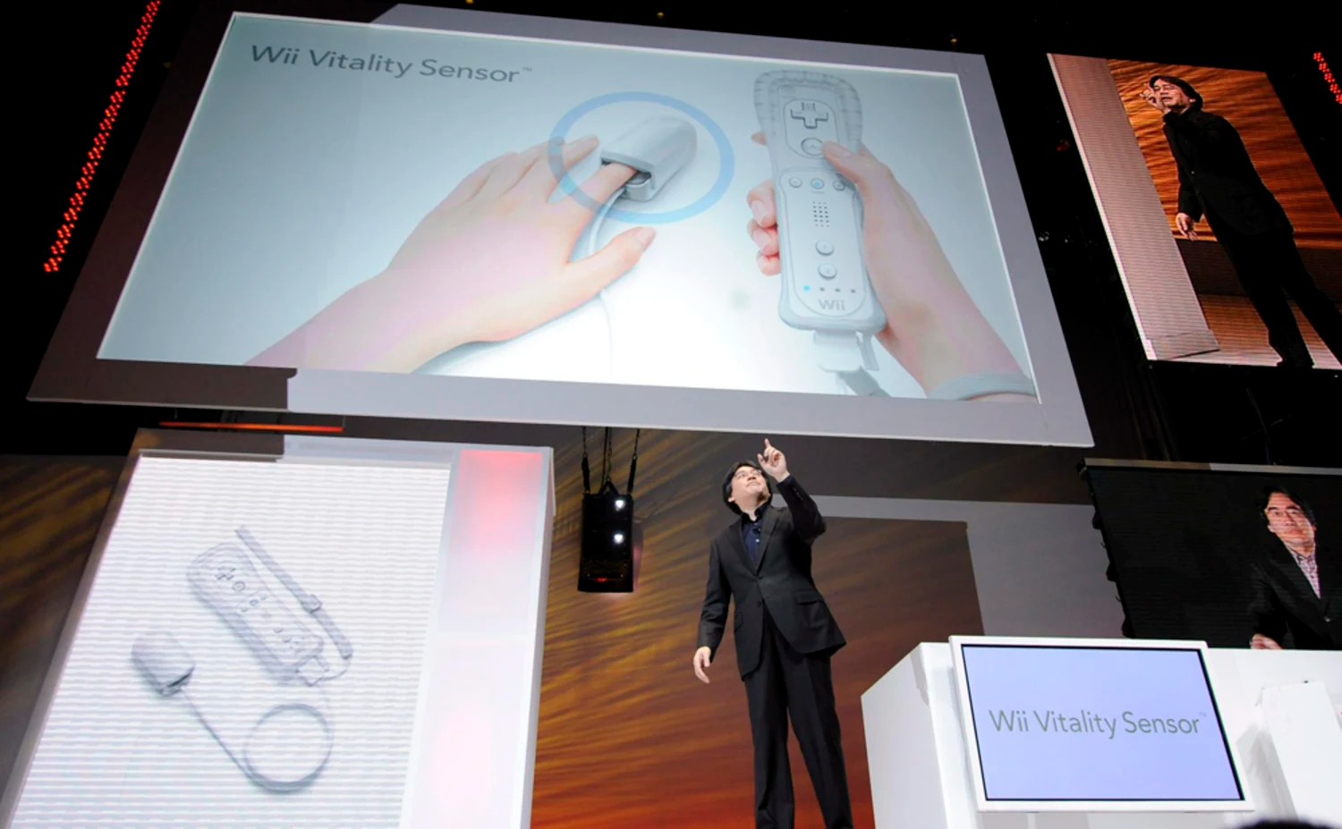 Nell’estate del 2009 Satoru Iwata, allora presidente di Nintendo, presentò sul palco del Nokia Theatre il Vitality Sensor, un accessorio destinato al Wii che avrebbe dovuto rendere “visibile ciò che solitamente è invisibile”, nelle parole di Iwata. E cioè alcuni dati biometrici di chi lo avrebbe indossato.