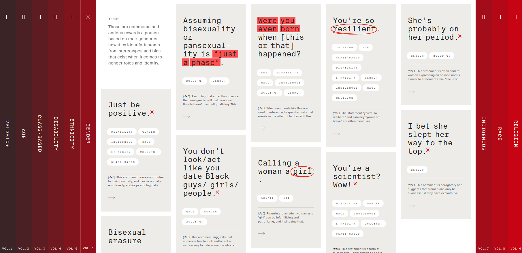 - Micropedia è una specie di piccola enciclopedia che cataloga commenti, modi di dire e frasi fatte che possono essere considerate micro aggressioni verbali.