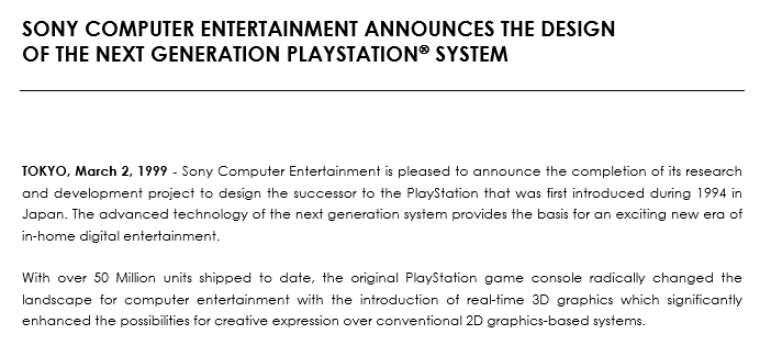 La febbre da PlayStation 2 venne alimentata con generosità da Sony, che indicò la via da seguire fin dai comunicati di marzo 1999.