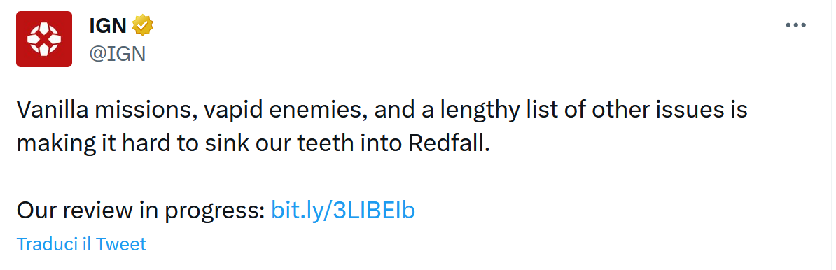 In un tweet di qualche mese fa, IGN utilizza di nuovo “vanilla” con accezione negativa. Qui “vanilla” qualifica le missioni di Redfall (Arkane, guarda un po’, per Xbox Series X|S e PC), accusate di essere banali o povere.