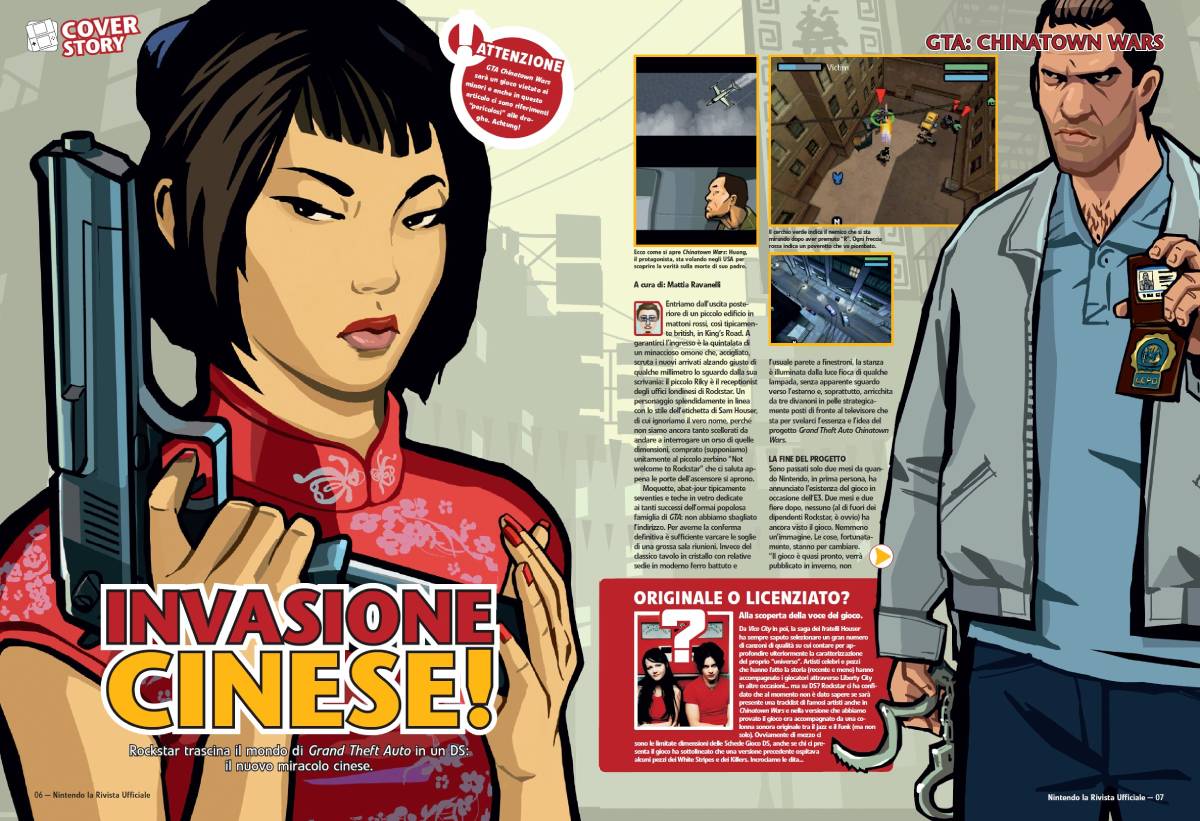 Sono passati solo due mesi da quando Nintendo, in prima persona, ha annunciato l’esistenza del gioco in occasione dell’E3. Due mesi e due fiere dopo, nessuno (al di fuori dei dipendenti Rockstar, è ovvio) ha ancora visto il gioco. Nemmeno un’immagine. Le cose, fortunatamente, stanno per cambiare. “Il gioco è quasi pronto, verrà pubblicato in inverno, non abbiamo ancora la certezza di una data più precisa”, ammette XXYY [[chiedere a omissis]], “la scelta è comunque stata quella di lavorare con calma, senza pressioni, senza fretta, annunciando e mostrando Chinatown Wars solo in una fase particolarmente avanzata dello sviluppo”. E funziona. Il Nintendo DS verde acqua che ci viene infilato in mano ospita un gioco pressoché completo e non è uno di quelli che si autoassemblano per magia tra la notte e il giorno, tantomeno si tratta di una conversione frettolosa o di un piccolo esperimento degno di pochi mesi di sviluppo.