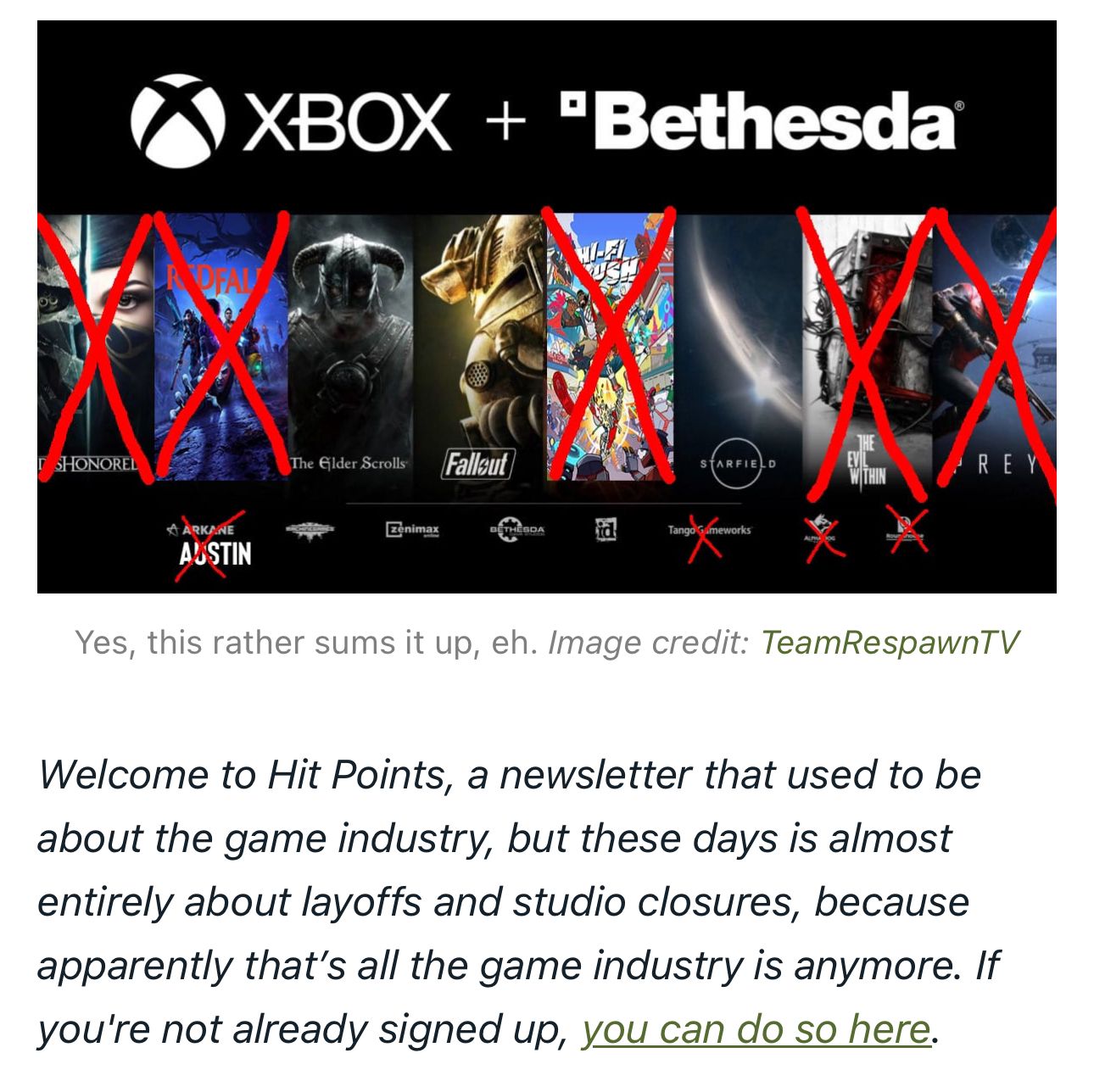 Intanto alcuni dei giochi sviluppati da questi studi non sono solo giochi estremamente apprezzati (Prey, gli OlliOlli, Kerbal Space Program, Hi-Fi Rush), ma anche profittevoli, e cioè che sono stati in grado di generare dei profitti per il proprio sviluppatore ed editore. E ancora: Take-Two pubblica GTA, uno dei videogiochi che genera un’enorme quantità di entrate, com’è possibile che non possa gestire le eventuali perdite della sua etichetta Private Division (di cui Roll7 e Intercept Games facevano parte) che lei stessa ha creato e per cui ha acquisito studi come appunto Roll7? E poi ci sono Microsoft e Phil Spencer, che dopo 10 anni di proclami e investimenti non solo sono ancora dove erano prima, e cioè dietro a Sony e Nintendo, ma ancora senza una strategia chiara e funzionale perché, se lo scopo era quello di acquisire gli studi per alimentare il Game Pass, e questo non cresce, forse qualcosa non va. In sostanza: basta farsi fregare da Phil Spencer.
