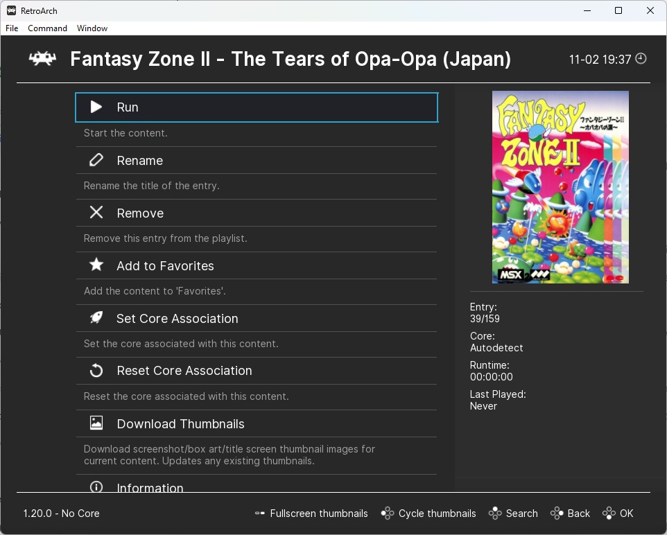 Quello settimane di utilizzo quotidiano di Retroarch mi hanno fatto capire, è che le opzioni sono tantissime, ma che ci vuole proprio poco per iniziare. Quello che mi ha sorpreso è l’ordine e la logica con cui molte possibilità vengono proposte. C’è anche una certa generosità nel fornire informazioni essenziali, quelle che molti altri sistemi simili a Retroarch prevedono che l’utente si procuri da sé, attraverso forum, tutorial e riti voodoo. Una volta che ho iniziato a vedere che le cose funzionavano bene e che quasi tutti i giochi dei sistemi “base” che avevo importato erano anche accompagnati dalla loro bella illustrazione, ci vuole poco perché Retroarch le scarichi per te, ho alzato l’asticella. Ho scaricato degli enormi set di giochi emulati per Amiga, un computer che non ho mai avuto e che in passato ho provato a emulare, senza mai riuscirci (per mancanza di applicazione mia e di cordialità da parte degli emulatori stessi).
