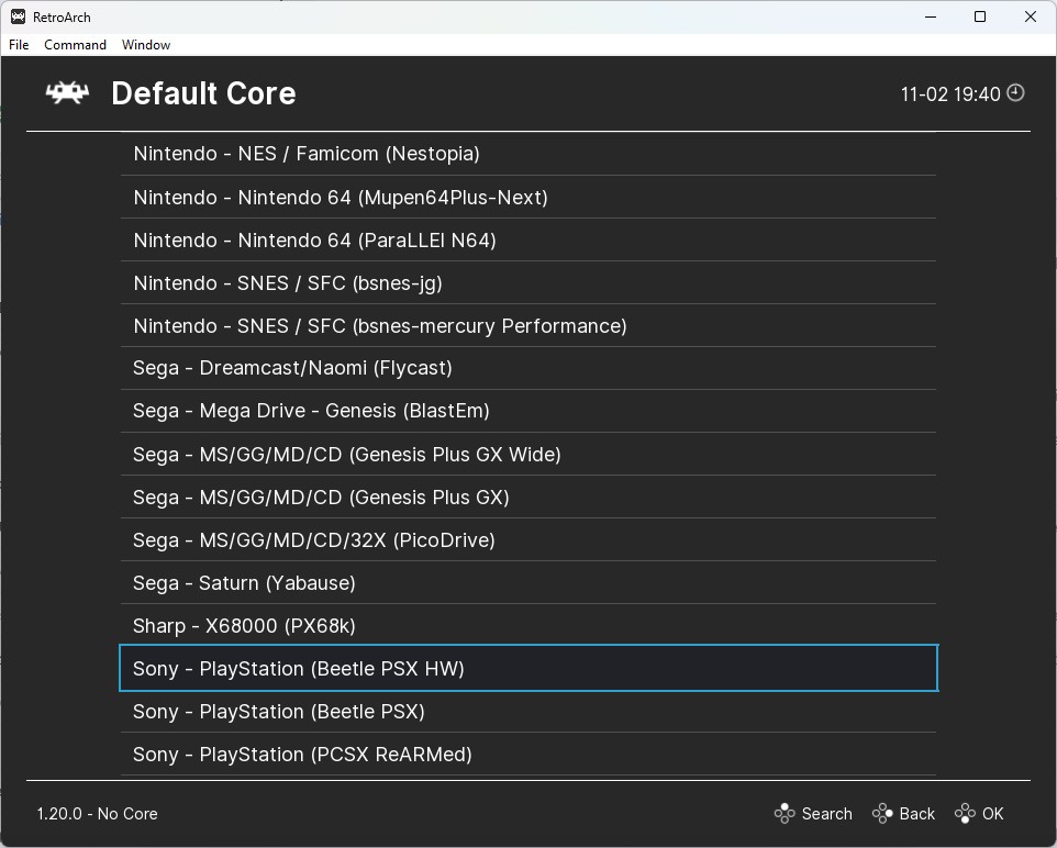 Il passaggio a Retroarch è stato inizialmente scoraggiante, ma prima di arrivarci devo svelare che anche Retroarch è, di fatto, un frontend. Non chiamate l’associazione consumatori, non vi sto truffando. La differenza è che con Retroarch sei sempre a un click di distanza dal download dei motori dell’emulazione, che qui e non solo qui vengono chiamati “core”. Sono in effetti i nuclei che imitano il funzionamento degli hardware da gioco del passato. Così se vuoi provare l’indegno Last Battle (1989) per il Mega Drive, che poi era il gioco di Kenshiro senza licenza e senza game design, devi dire a Retroarch: ciao, mi scarichi il core del Mega Drive? Lui ti chiede di sceglierne uno tra svariati a disposizione e a quel punto ti muovi un po’ a tentoni, magari riconoscendo nomi già sentiti e letti altrove.
