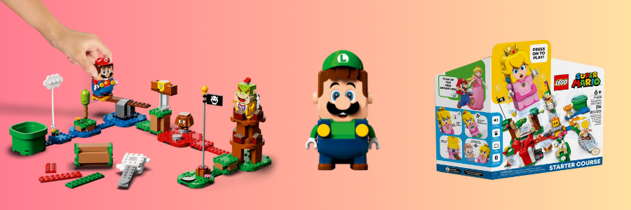 LEGO Mario, Luigi e Peach - Sono i tre starter set di un sistema di gioco componibile, nel quale si costruiscono dei percorsi da far fare ai personaggi del proprio set. Siccome questi sono interattivi, se per esempio mettete Mario su un pezzo di lego rosso lui lo interprenterà come lava, se è blu acqua e così via. Ogni set ha poi degli elementi tipici della serie che fanno partire gli effetti sonori dei giochi. Più ne avete, più potete fare i percorsi lunghi. Il consiglio è partire da uno di quei tre set e poi prendervi quante più espansioni vi aggradano, visto che ce ne sono tantissime.