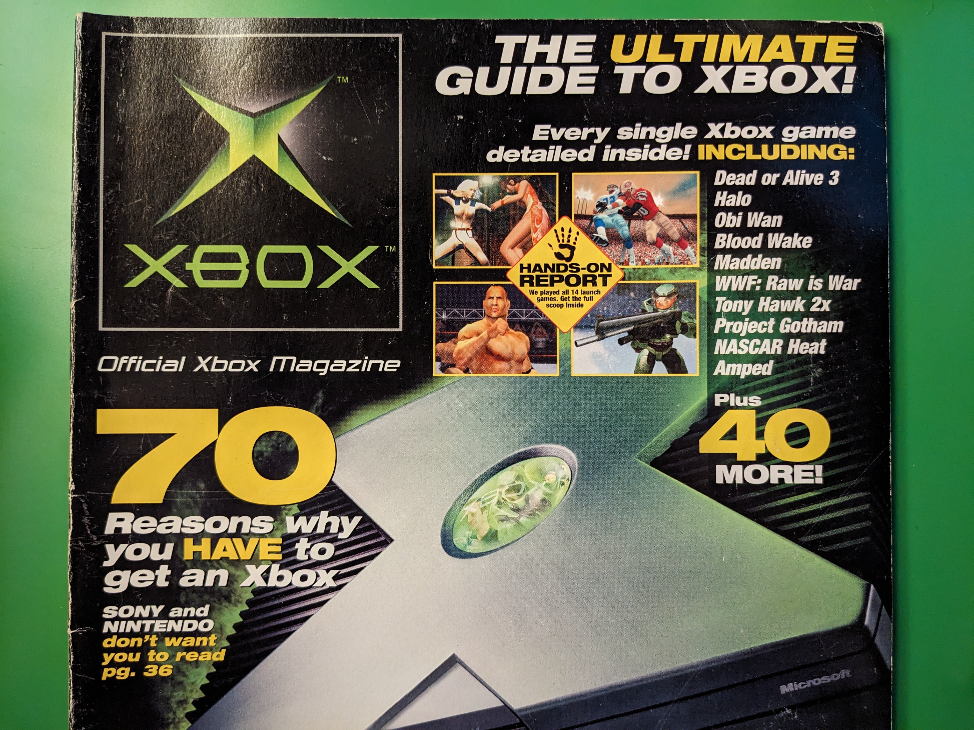 C’è un numero di prova di Official Xbox Magazine per gli Stati Uniti, distribuito appena prima della disponibilità della console di Microsoft e, ovviamente, prima dell’inizio dell’avventura editoriale della stessa rivista. Mi è finito tra le mani quando ho iniziato a lavorare alla versione italiana della stessa rivista, nell’autunno del 2001, e l’ho tenuto da parte per tutti questi anni.