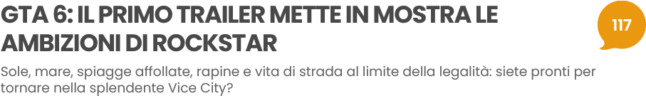 In questo momento sono le undici di sera del 4 dicembre e oggi, nel multicolore mondo dei videogiochi, è parsa esserci una sola sfumatura: quella tra l’arancione e il rosa su cui Rockstar ha appeso le poche parole che, nei giorni scorsi, hanno confermato l’arrivo del primo trailer di Grand Theft Auto VI. O Grand Theft Auto 6. O accorciato: GTA VI. O accorciato nell’altro modo: GTA 6. O senza spazio così: GTAVI. O senza spazio cosà: GTA6. Fidatevi, ci saranno state emicranie a pioggia un po’ in tutte le redazioni: si saranno chiesti “come lo scriviamo?”, interrogando regolarmente Google Trends. Già, come scriverlo se si vuole intercettare il maggior numero di ricerche effettuate sul motore di Mountain View? Solo chi si è trovato a dover ipotizzare una risposta a quella domanda e ora ha deciso di sprecare il suo tempo in maniera più divertente (eccomi qua!) può cogliere il senso di grande nulla (e insieme di sconfitta) che si prova quando infilati in quella situazione.
