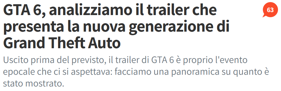 Anche chi è solito non puntare affatto sulla quantità dei contenuti, per Grand Theft Auto VI ha fatto uno strappo alla regola. È il caso di Videogames Chronicle, testata specializzata nelle notizie, che fin dalla prima mattina del 5 dicembre aveva in homepage ben cinque contenuti a tema.